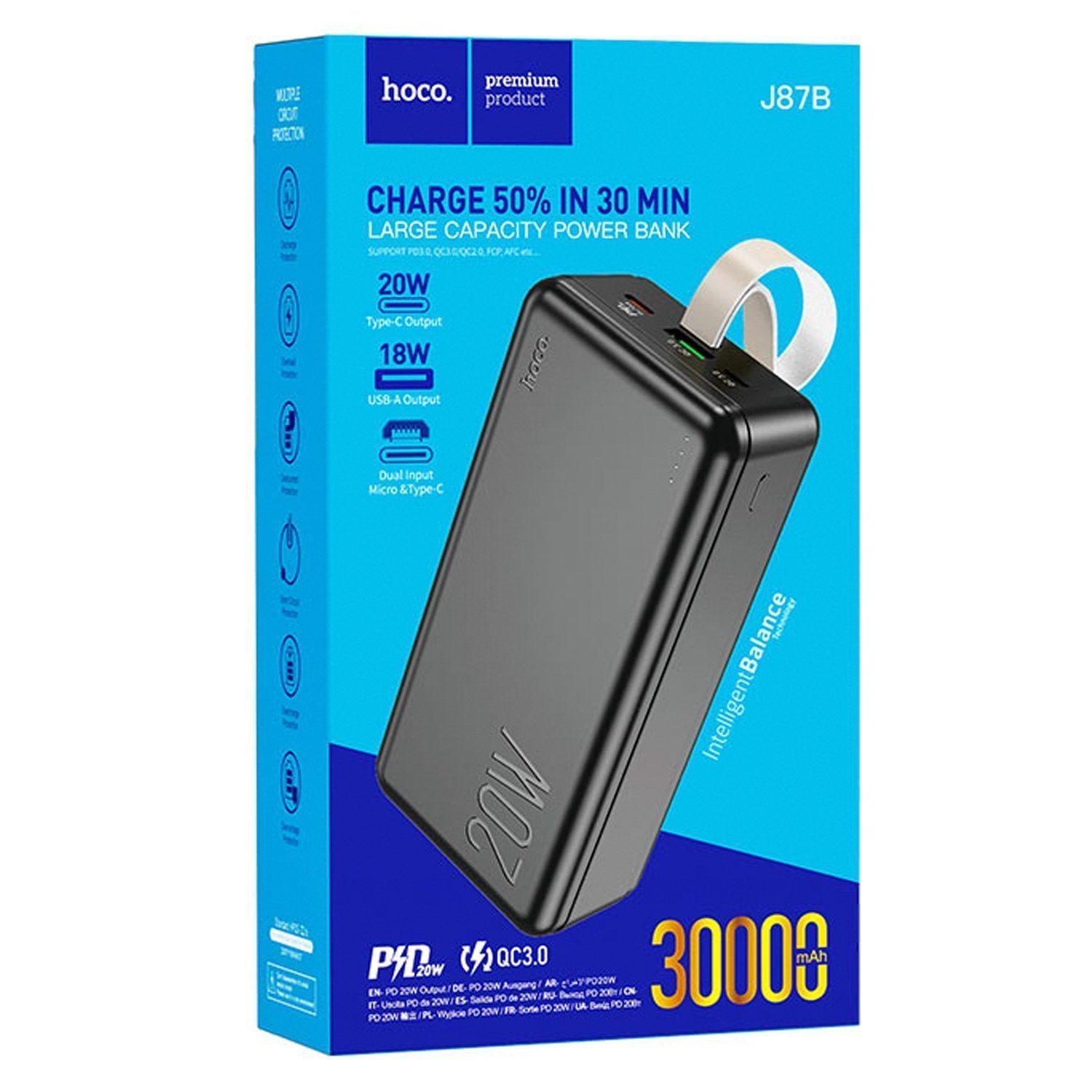 Внешний аккумулятор Hoco J87B PD QC 30 000mAh Micro USB/USB Type-C/USB/USB-C (black)