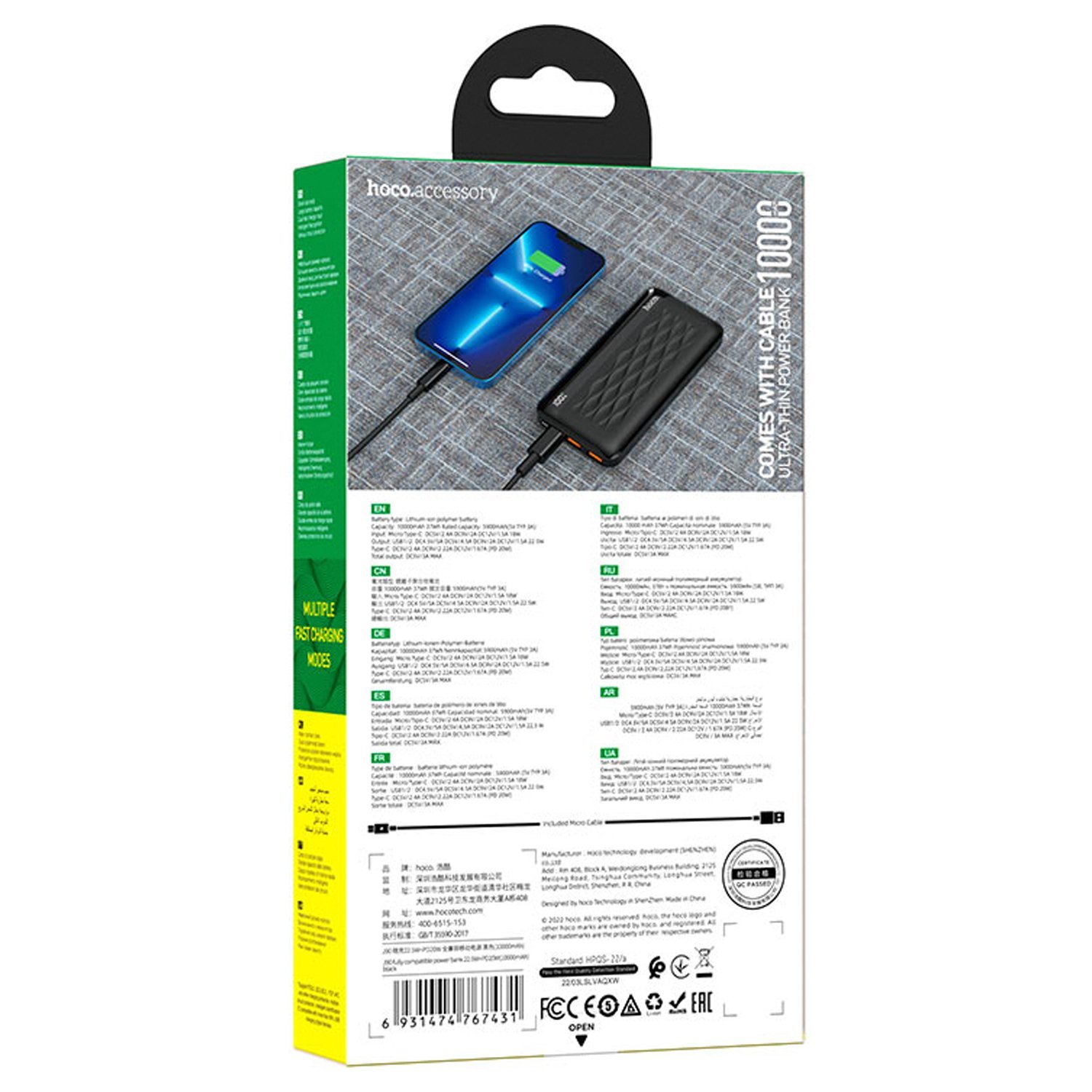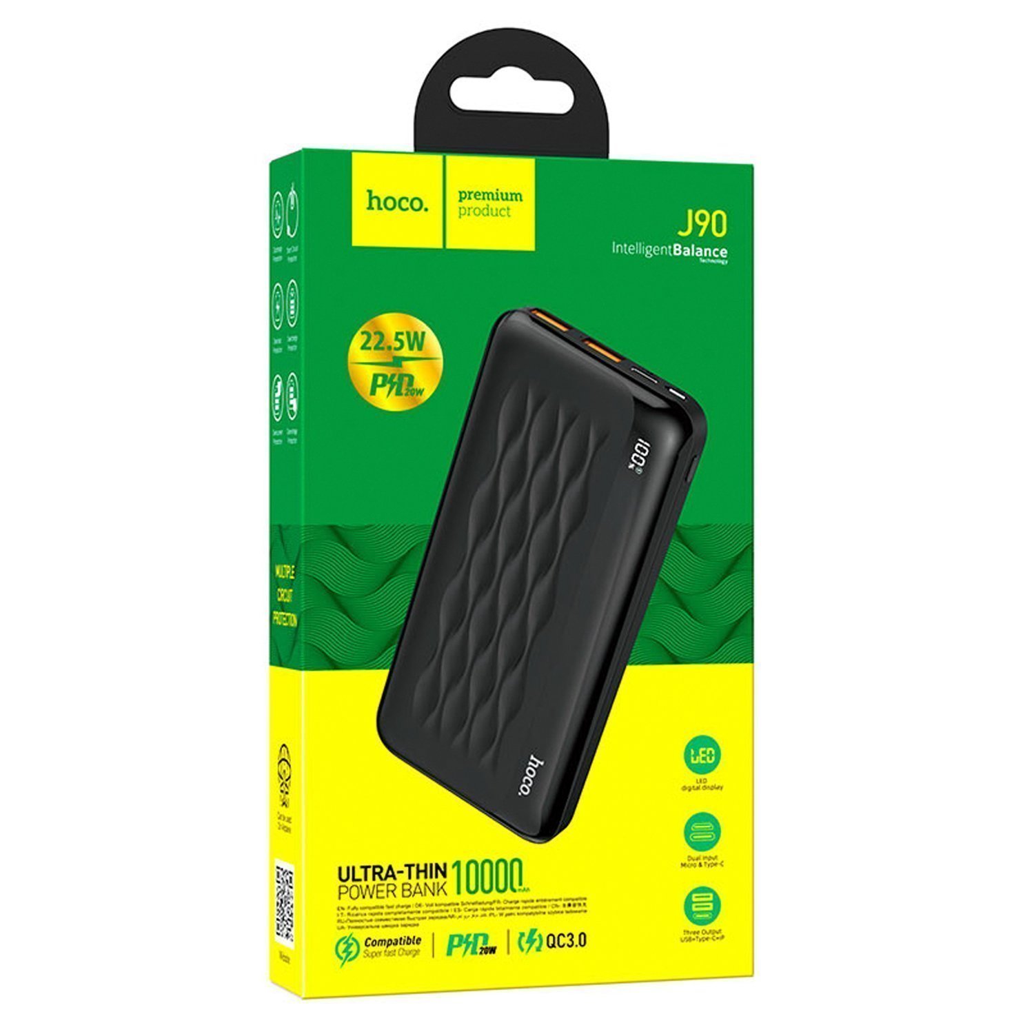 Внешний аккумулятор Hoco J90 PD QC 10000mAh Micro/Type-C/USB*2 (black)