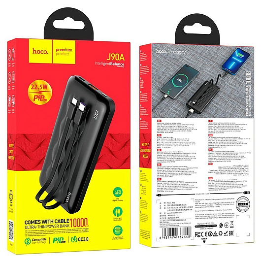 Внешний аккумулятор Hoco J90A PD QC 10000mAh Micro/Type-C/USB*2 (black)