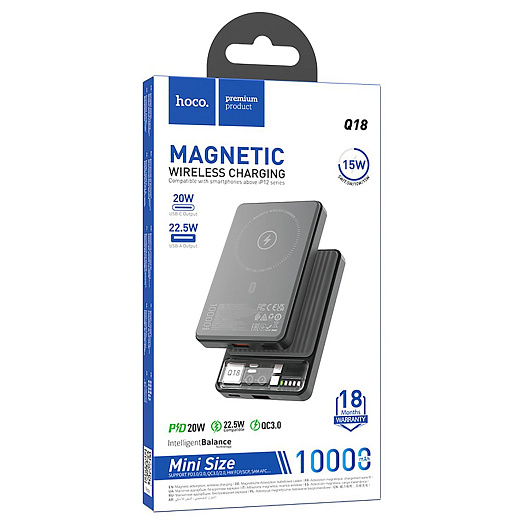 Внешний аккумулятор Hoco Q18 Tourer 22.5W SafeMag 10000mAh Type-C/USB/Type-C/SafeMag (black)
