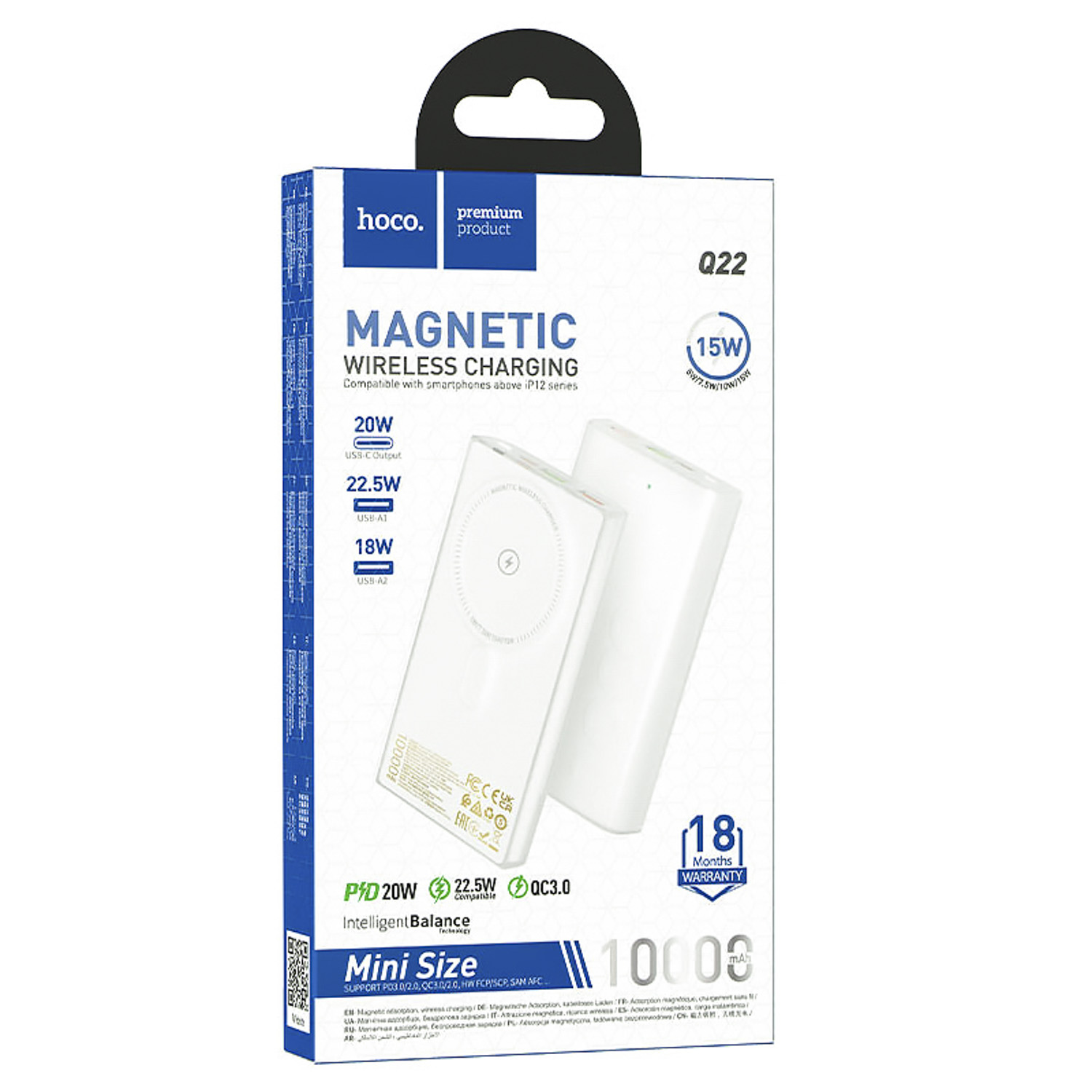 Внешний аккумулятор Hoco Q22 Taurus 22.5W+PD20W SafeMag 10000mAh Type-C/USB*2/Type-C (white)