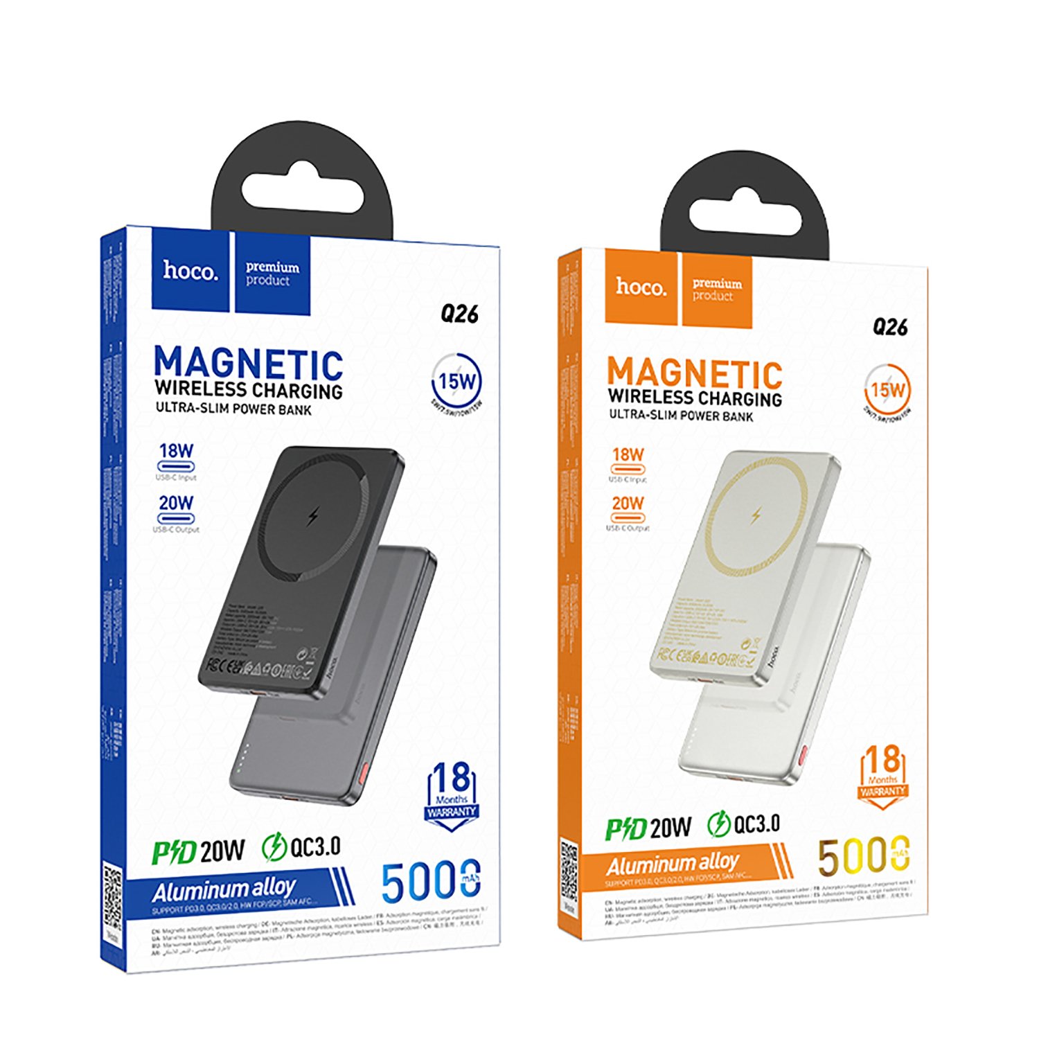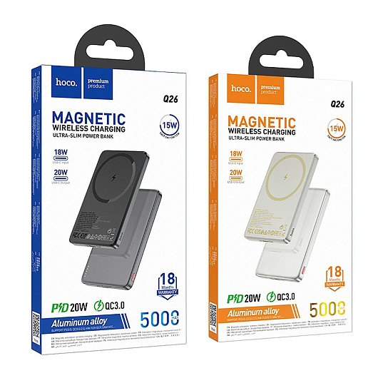 Внешний аккумулятор Hoco Q26 Joy PD20W SafeMag 5000mAh Type-C/Type-C/SafeMag (metal gray)