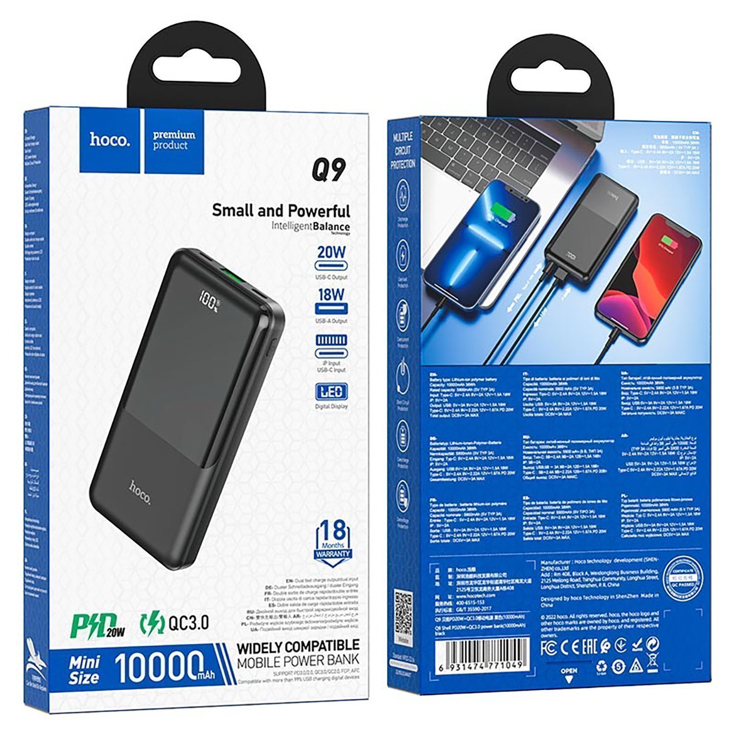 Внешний аккумулятор Hoco Q9 PD QC 10000mAh USB Type-C/Lightning/USB*2/Type-C (black)