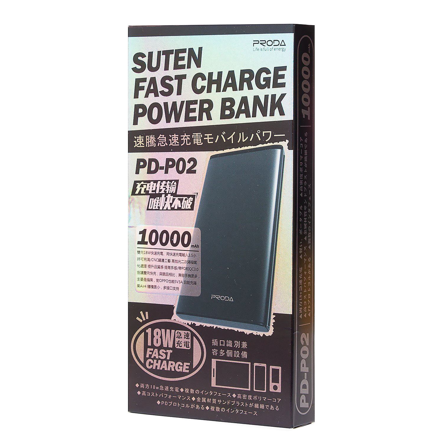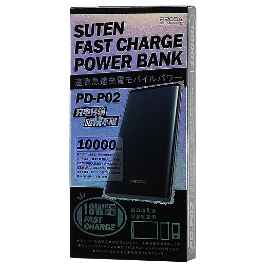 Внешний аккумулятор Proda PD-P02 10 000mAh Micro USB/USB Type-C/USB (gray)