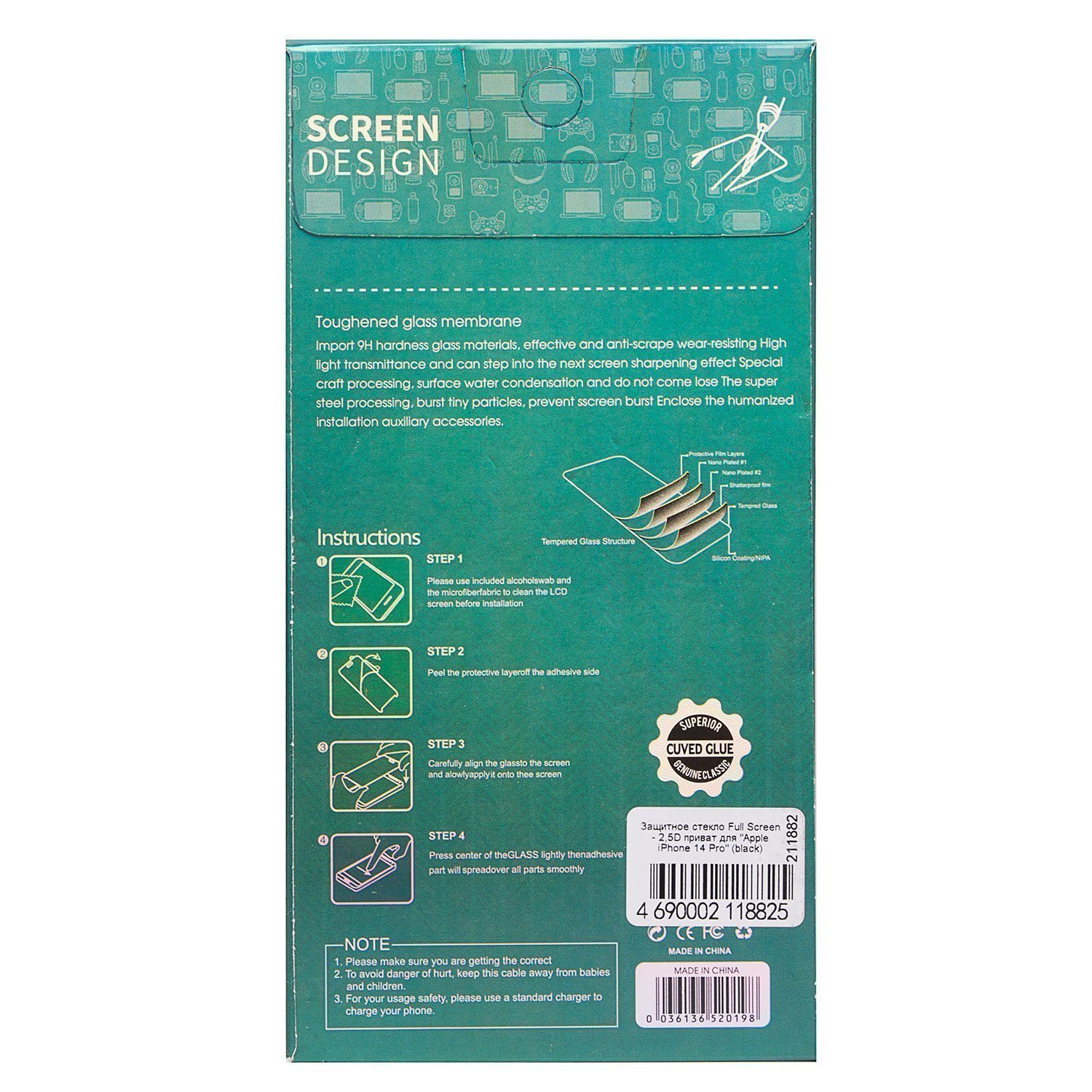 Защитное стекло Full Screen - 2,5D приват для "Apple iPhone 14 Pro" (black)