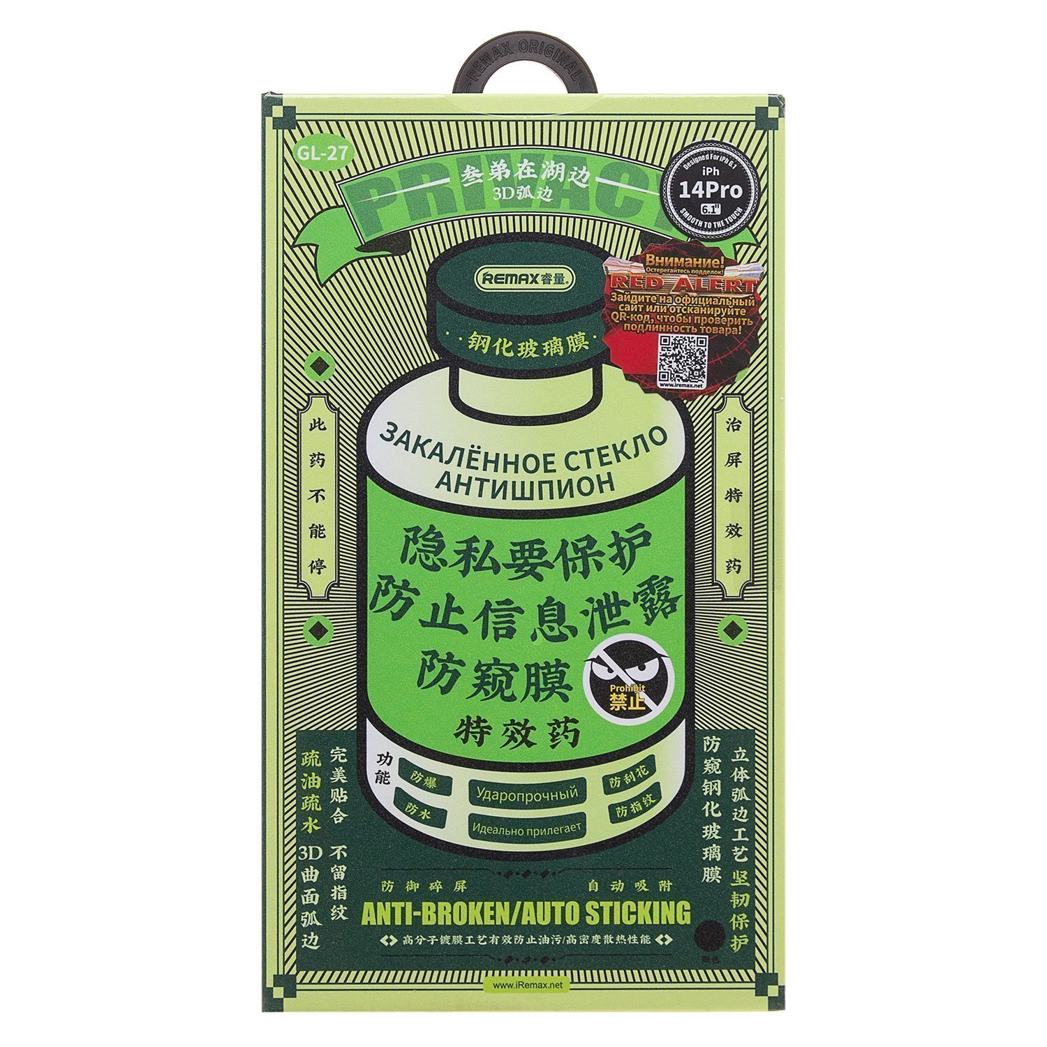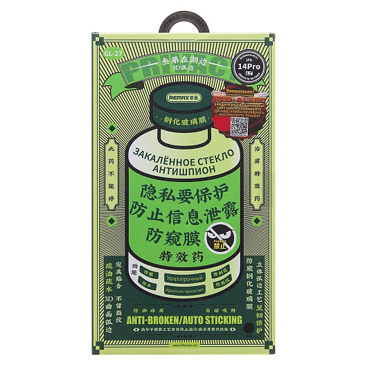 Защитное стекло Full Screen Remax Arcing Privacy GL-27 для "Apple iPhone 14 Pro" (black)