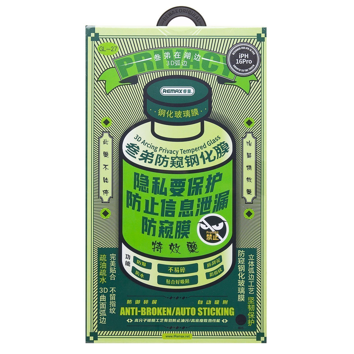 Защитное стекло Full Screen Remax Arcing Privacy GL-27 для "Apple iPhone 16 Pro/iPhone 17" (black)