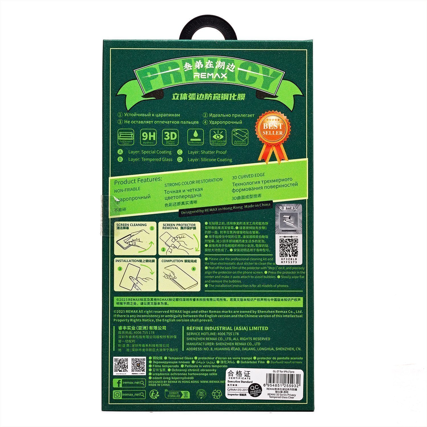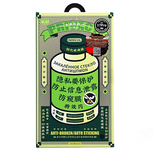 Защитное стекло Full Screen Remax Arcing Privacy GL-27 для "Apple iPhone 17/iPhone 16 Pro" (black)