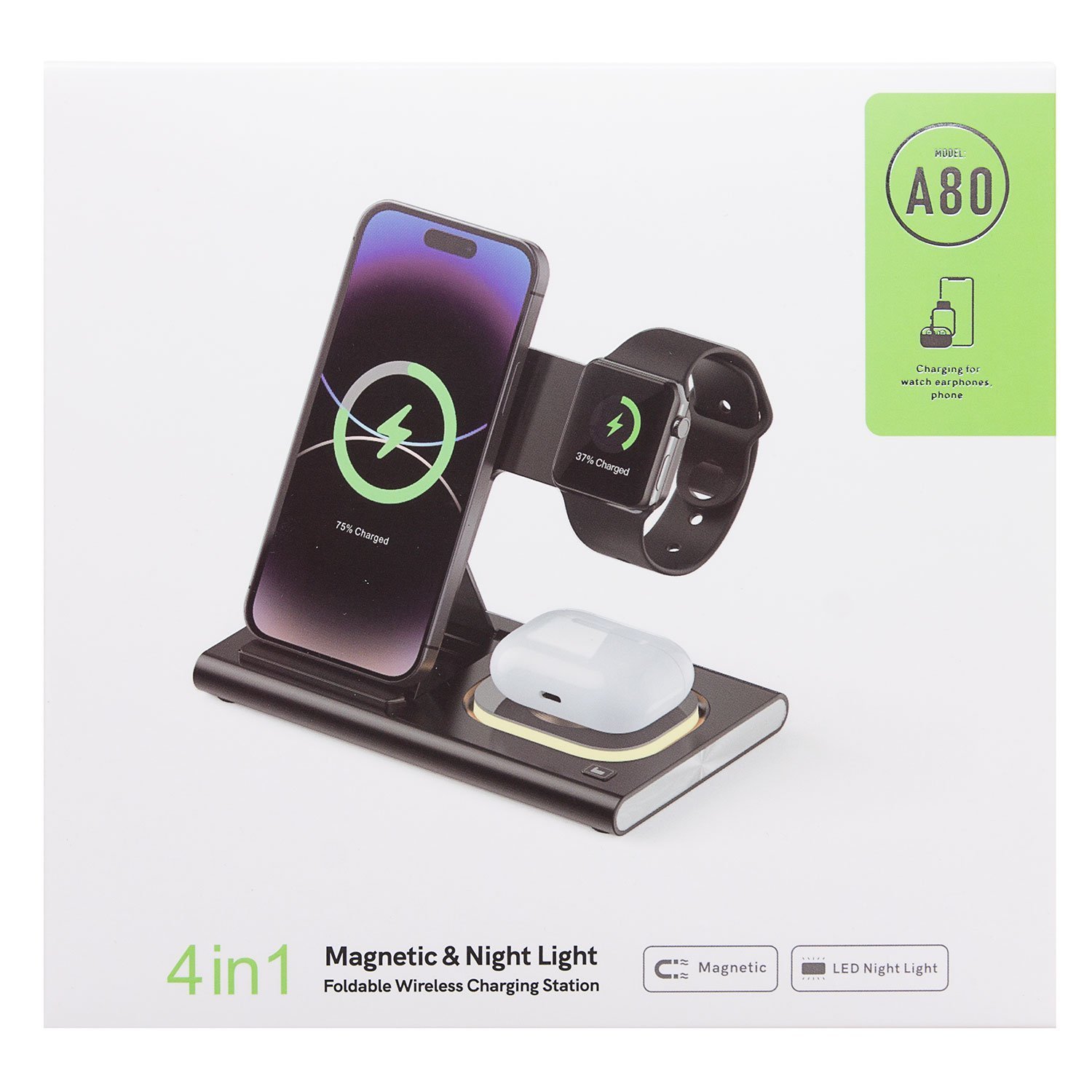 ЗУ Сетевое Беспроводное - A80 SafeMag 4in1 15W (black) (243546)