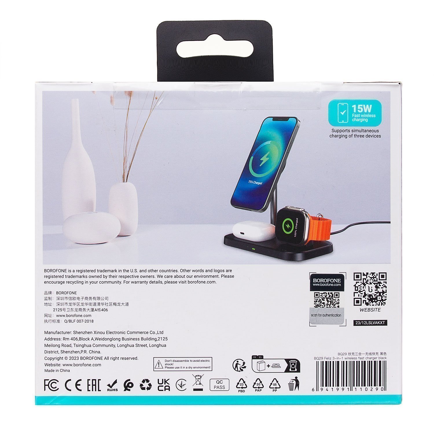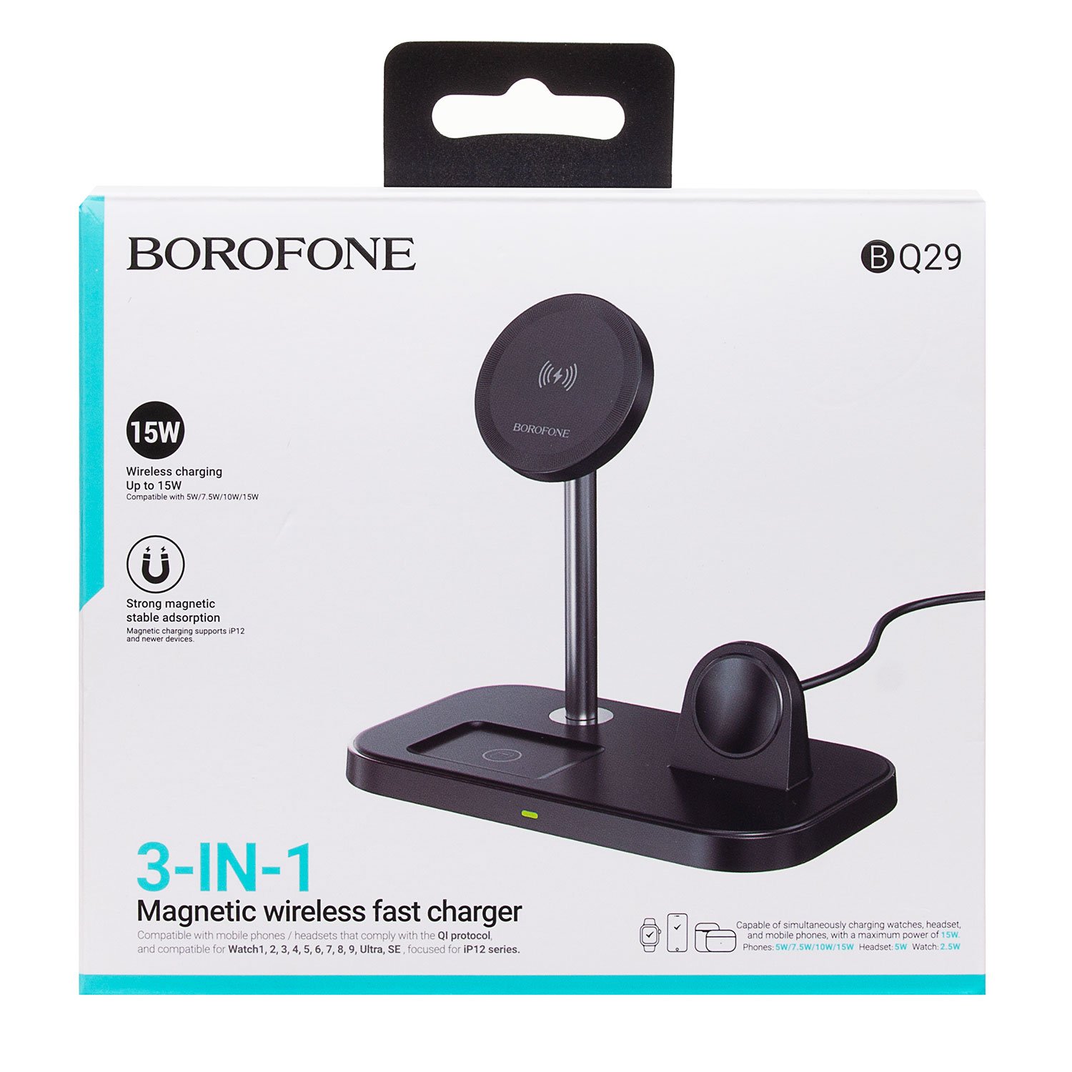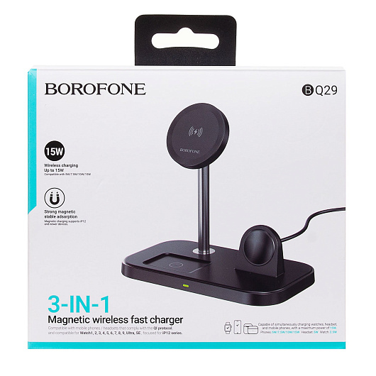 ЗУ Сетевое Беспроводное Borofone BQ29 Feliz 3-in-1 SafeMag (black)