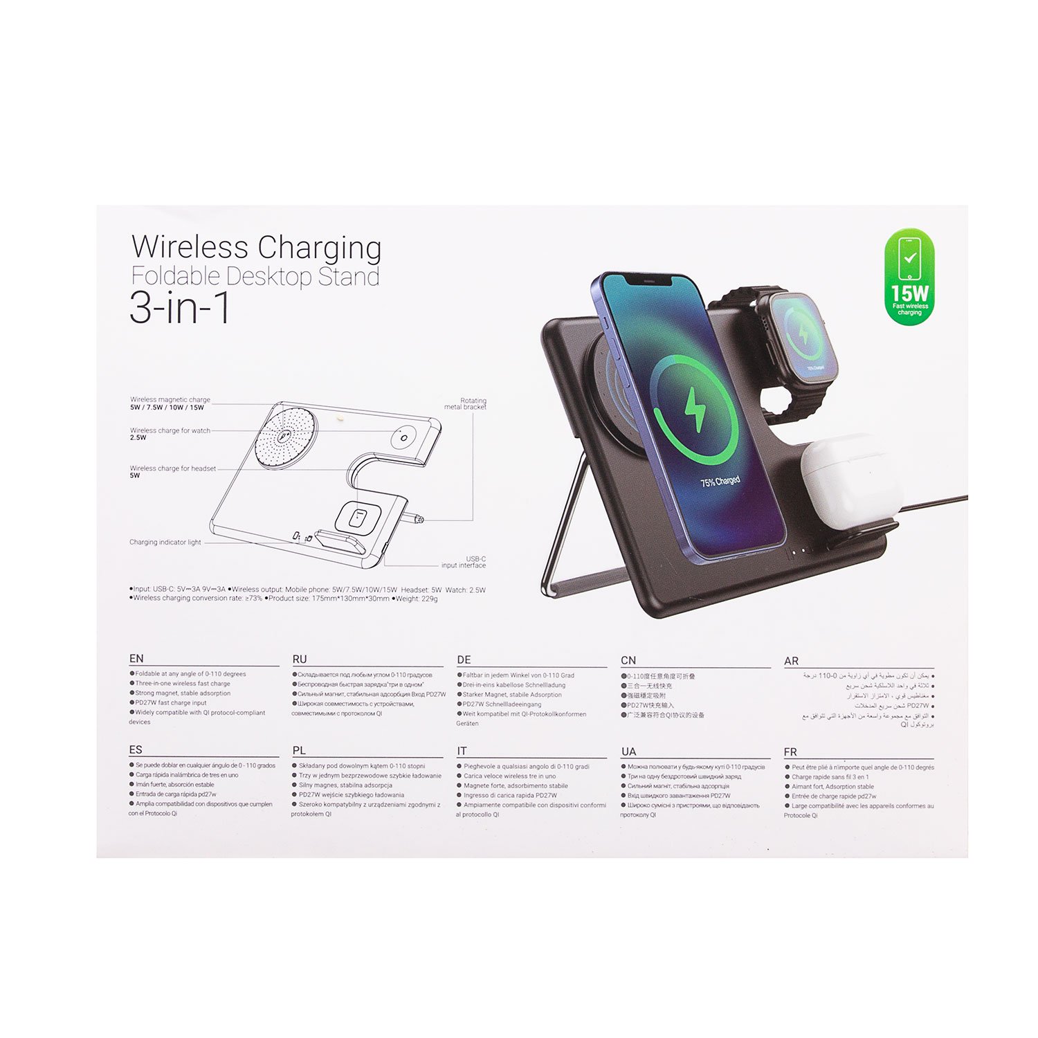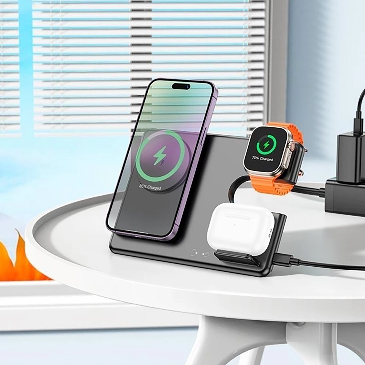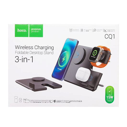 ЗУ Сетевое Беспроводное Hoco CQ1 Geek folding 3-in-1 for iPhone (black)