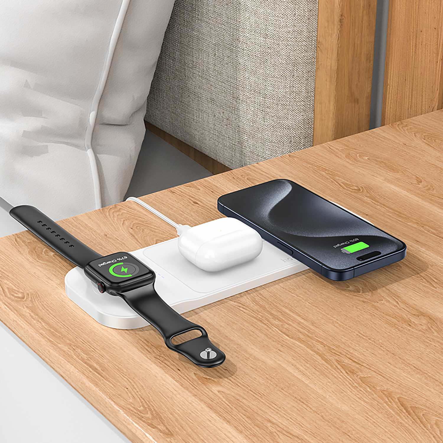 ЗУ Сетевое Беспроводное Hoco CQ5 Step 3-in-1 (iWatch) (white)