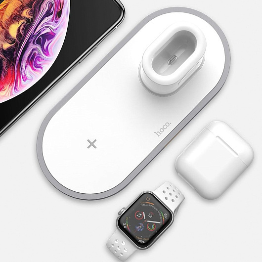 ЗУ Сетевое Беспроводное Hoco CW21 Wisdom 3-in-1 (повр. уп.) (white)