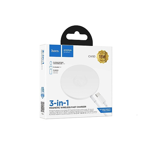 ЗУ Сетевое Беспроводное Hoco CW50 3in1 SafeMag 15W (white)