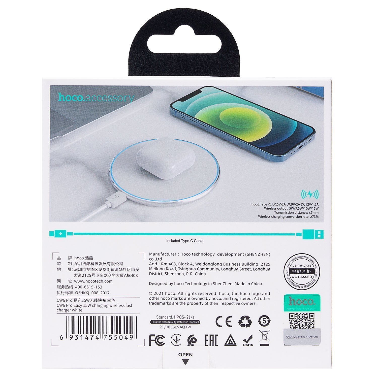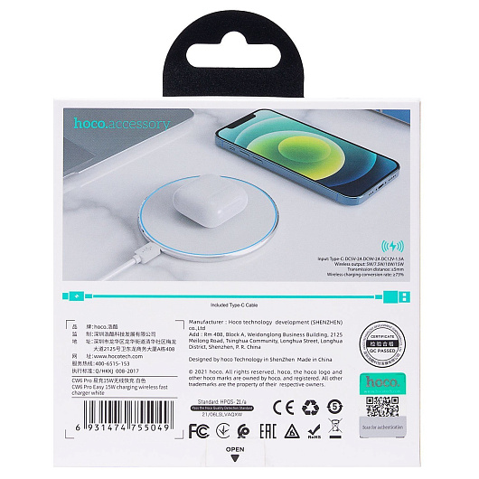 ЗУ Сетевое Беспроводное Hoco CW6 Pro PD/QC 15W (white)