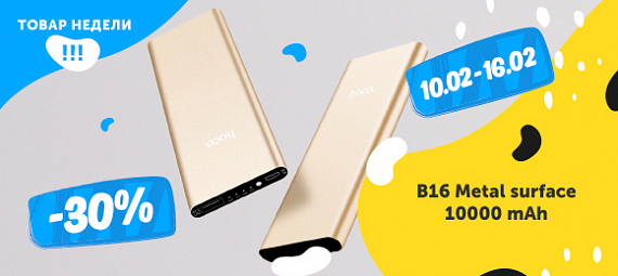 10 февраля - 16 февраля 2020, скидка 30% на Внешние аккумуляторы Hoco B16 Metal surface 10000