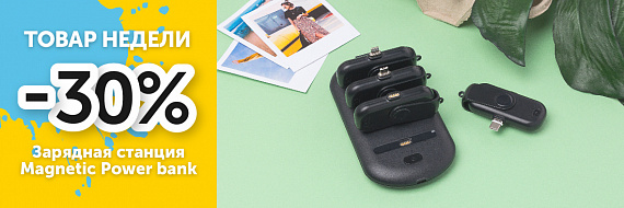 С 2 сентября - 8 сентября 2019, скидка 30% на Зарядную станцию Magnetic Power bank 5000 .
